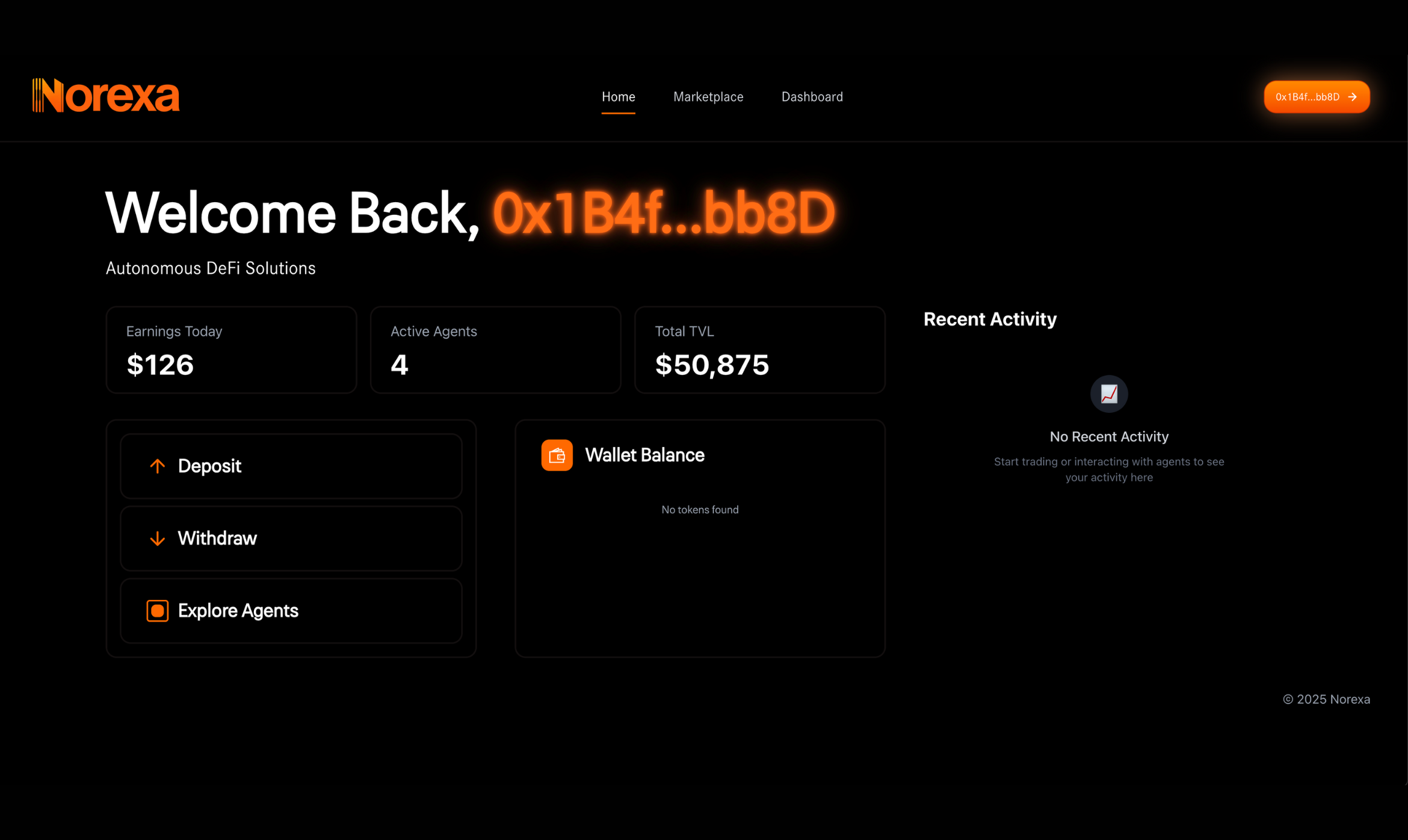 Stake once. Let Norexa DEFI agents farm, hedge & vote—while you sleep